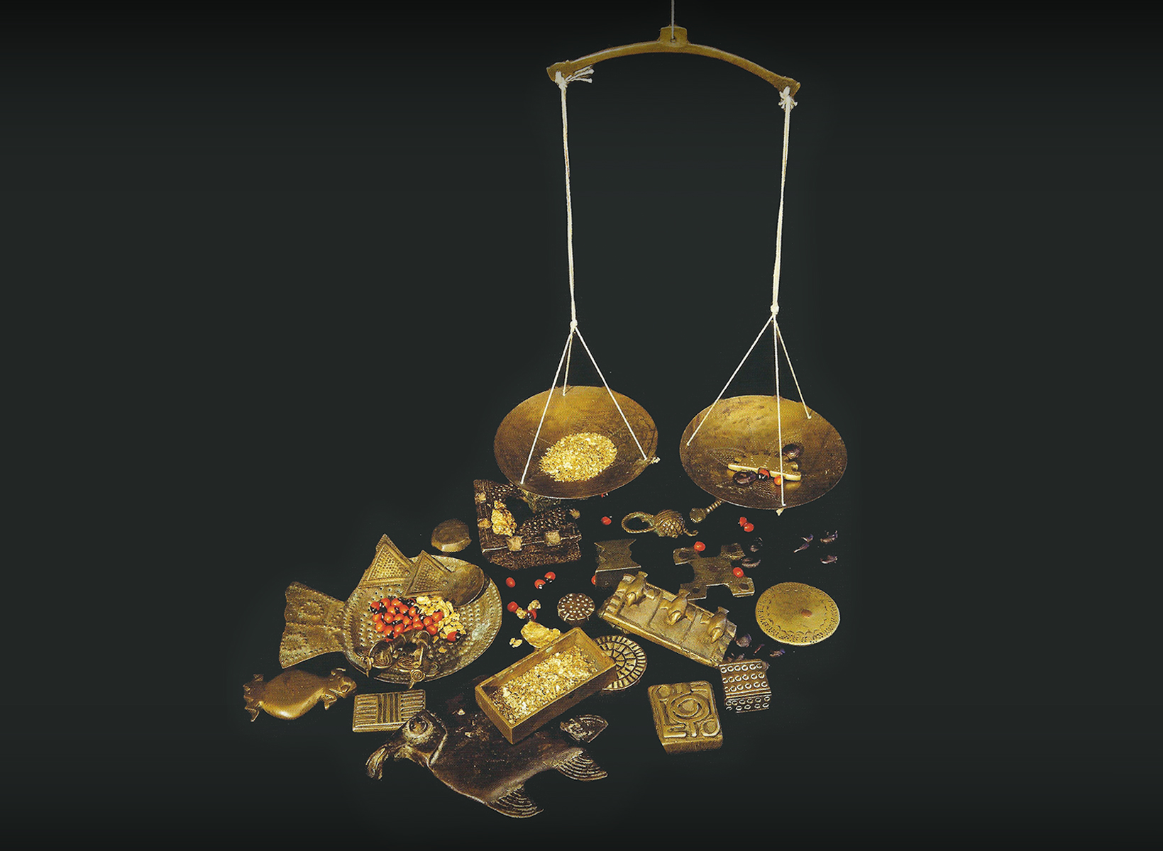 Per il gruppo etno-linguistico Akan l'oro era un risorsa fondamentale: minerale molto presente sul territorio, finì per rappresentare ricchezza, prestigio politico ed essere alla base dell'economia. L'oro veniva scambiato, esclusivamente in polvere, pesata con precisione tramite bilance e piccoli pesi in metallo, veri e propri strumenti di misurazione. Secondo fonti orali, questi pesi furono creati dagli antenati, in metalli come bronzo, rame e ottone, e potevano essere sia figurativi che non.